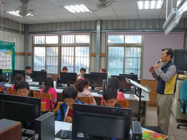 星期二晨光活動時間,感謝前任校長胡校長到學校來指導孩子直笛。